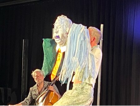 Insgesamt also ein gelungener Start in die Spielzeit 2025/26. Das Publikum zeigte sich begeistert. Am Ende spendete es einen donnernden Applaus und Standing Ovations, bevor die Theaterbesucherinnen und -besucher eingeladen waren, sich die Figuren und Masken aus der Nähe anzusehen.