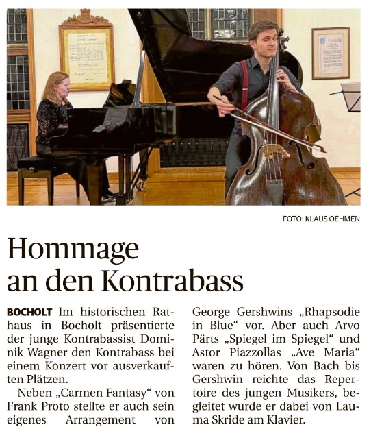 Erklärtes Ziel des jungen Kontrabassisten Dominik Wagner ist es, den Kontrabass aus dem Schatten der Konzertbühne zu holen und all seine Vielfältigkeit zu zeigen. Dies ist ihm beim ausverkauften Konzert des Theatervereins im Historischen Rathaus meisterhaft gelungen.