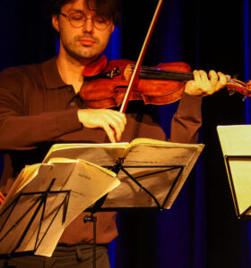 Zum Abschluss gab es dann Felix Mendelssohns Quartett in D-Dur, op. 44/1, ein hochvirtuoses romantisches Werk. Auch hier beeindruckte der gleichermaßen transparente wie zupackende Klang des Ensembles. Besonders berührend war der langsame Satz, dargeboten ohne künstliche Attitüde, einfach nur schlicht zu Herzen gehend – wie auf einem Instrument gespielt.